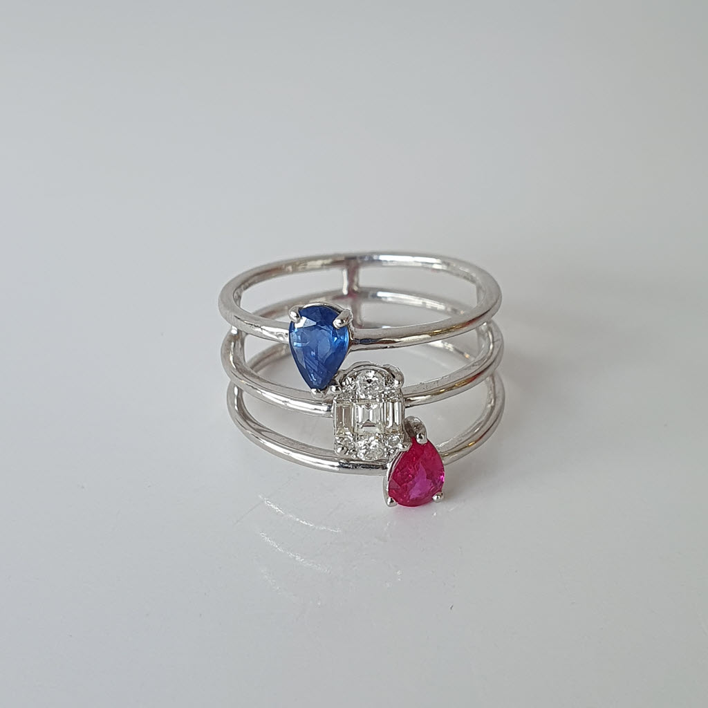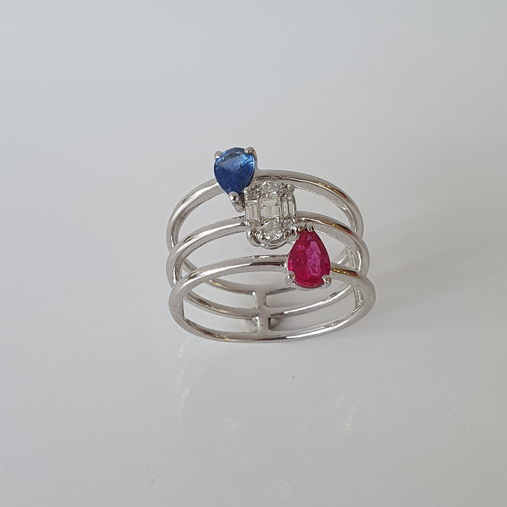 Anel da coleção Caleidoscópio em ouro branco 18 k, safira, rubi e diamantes 0,2 ct