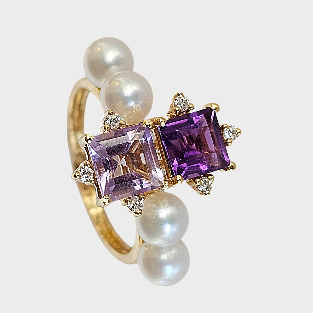 Anel da coleção Grape em ouro amarelo 18 k, ametistas 1,99ct e diamantes 0,1ct
