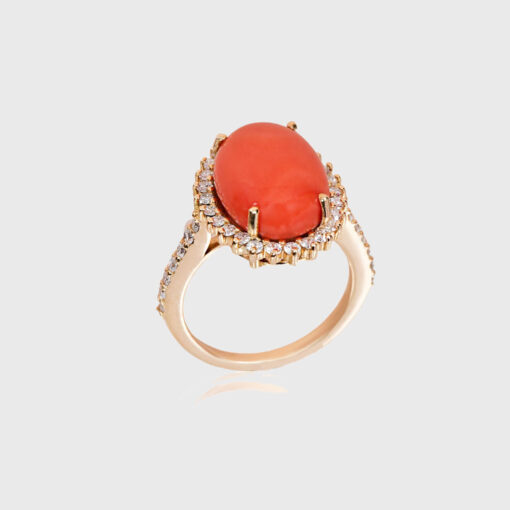Anel da coleção Sea Garden em ouro amarelo 18 K, coral e diamantes 0,72 ct