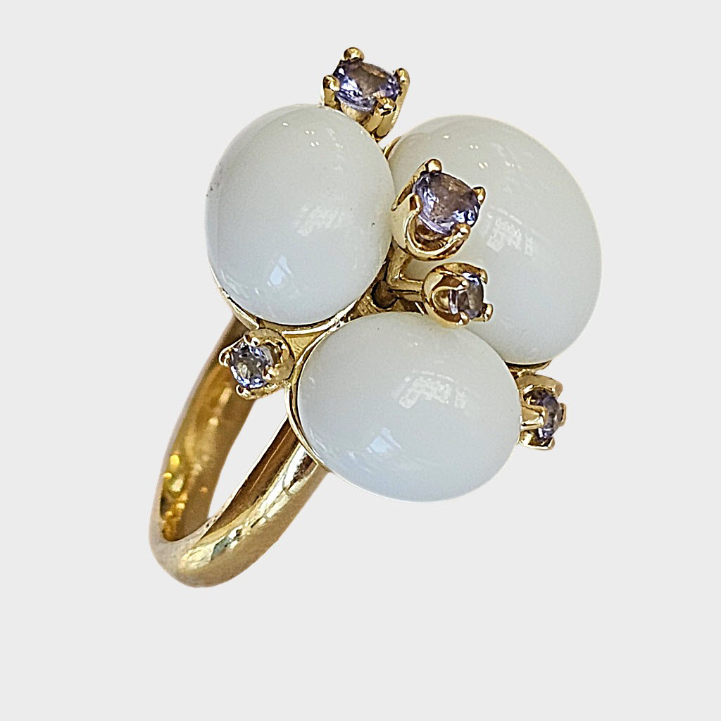Anel da coleção RM em ouro amarelo 18 k, ágata e tanzanitas