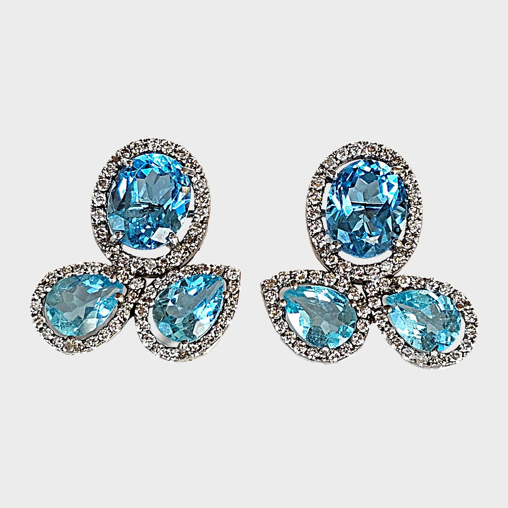 Par de brincos da coleção Saint Tropez em ouro branco 18 k, diamantes 1,1ct, topázios 6,6ct e apatitas 4,4ct