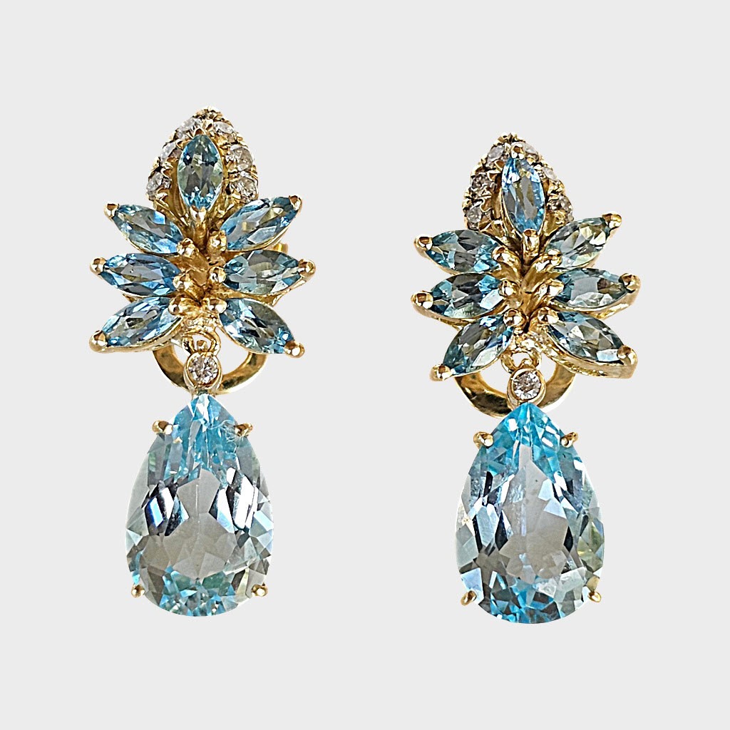 Par de brincos da coleção Saint Tropez em ouro amarelo 18 k, diamantes o,12ct e topázios