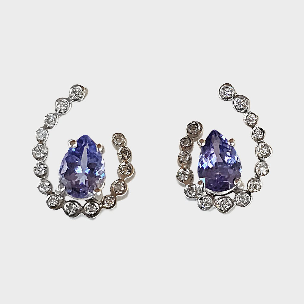Par de brincos da coleção Tanzânia em ouro branco 18 k, diamantes 0,15ct e tanzanitas 1,4ct